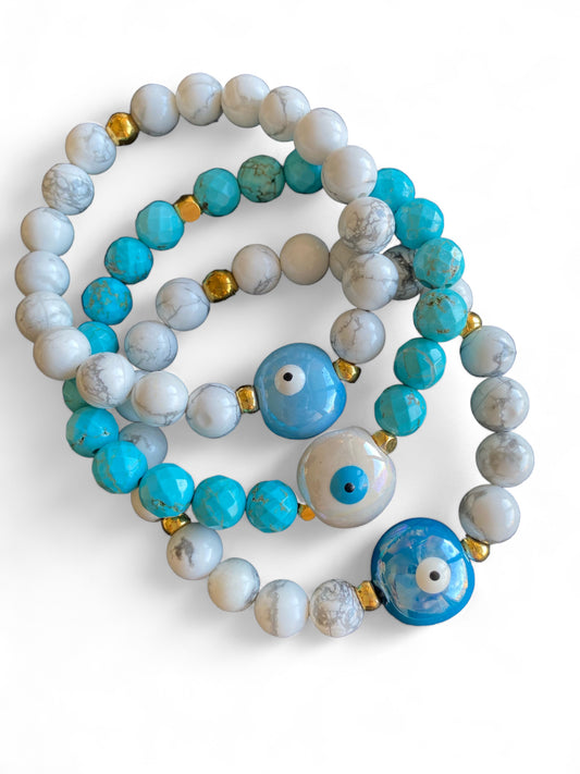 Mykonos, Mother of Pearl Evil Eye Bracelet