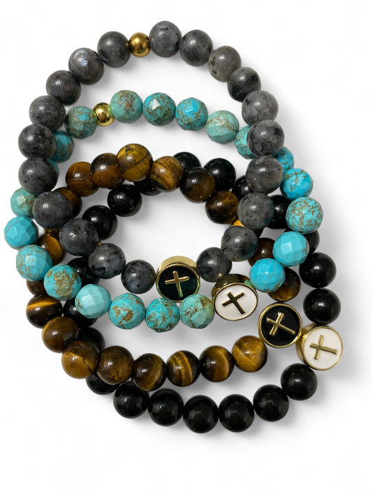 Tinos, Small Enamel Cross Adjustable Bracelet